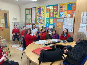 Múinteoir Bernie comes every Thursday to teach the Accordion and the Concertina. We are learning lots of nice tunes. She helps us with the flutes and the banjo also!